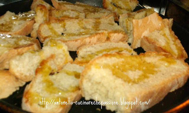 Tostare il pane raffermo leggermente oliato nel forno (sarebbe più buono fritto ma...si sa ...non fa bene e quindi ci sacrifichiamo...)